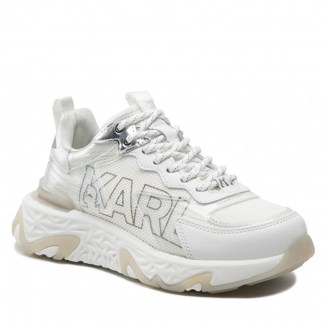 Sneakers KARL LAGERFELD – KL62427 White Lthr & Textile W/Silver ☝ Sneakers femme KARL LAGERFELD à prix avantageux
