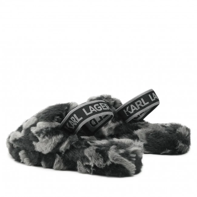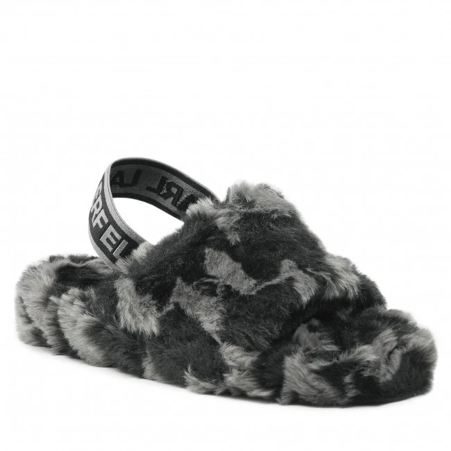 Chaussons KARL LAGERFELD – KL40203 Black Faux Fur w/Dk Grey ☝ Chaussons femme KARL LAGERFELD à prix avantageux